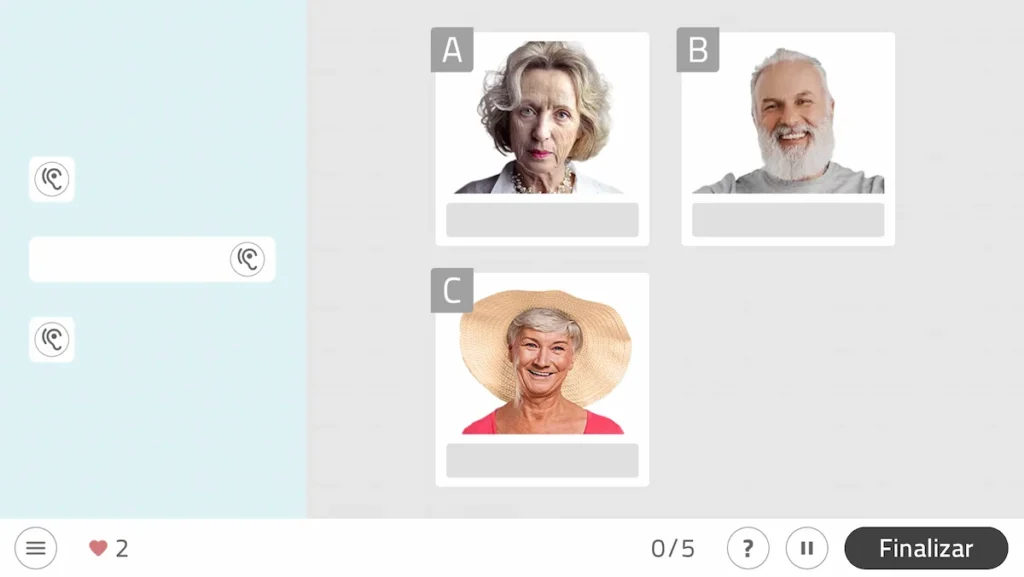 يتضمن هذا اللعبة القابلة للتخصيص من NeuronUP للذاكرة العرضية الاستماع وحفظ وربط أسماء الأشخاص الذين يظهرون على الشاشة.