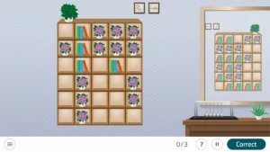 على اليمين يوجد النموذج وعلى اليسار الرفّ الذي يجب ترتيبه، هل سيتمكن مريضك الذي عانى سكتة دماغية من ترتيبه بشكل صحيح؟