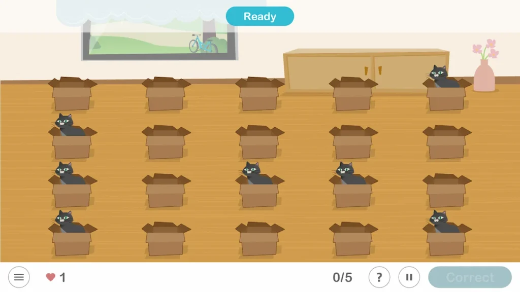 يتمثل هذا النشاط الجديد للذاكرة للأطفال في حفظ موضع الصناديق المختلفة ثم إعادة إنتاجه بالطريقة نفسها. قد يبدو الأمر بسيطًا في البداية، لكن مع ظهور المزيد من القطط في المشهد تدريجيًا، سيواجه المستخدمون الصغار تحديًا كبيرًا.