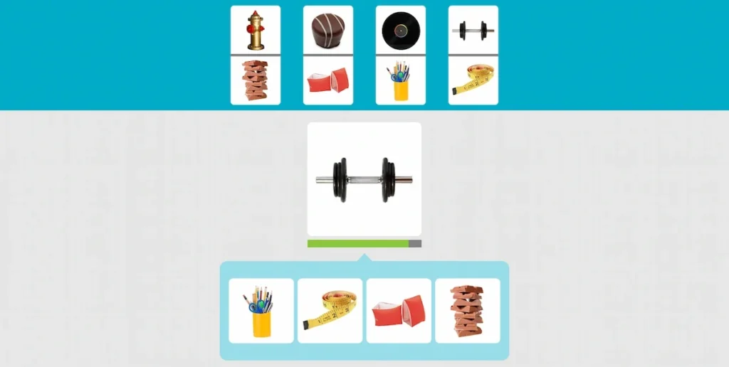 تتمثل لعبة NeuronUP هذه في ربط العناصر المعروضة في الصورة بأقصى سرعة ممكنة. مطابقات سريعة مخصصة للعمل على سرعة المعالجة والانتباه الانتقائي والانتباه المستمر.
