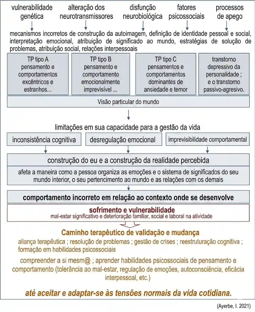 O dilema encontramos, pois, entre a funcionalidade percebida do padrão de pensamentos e comportamentos inadaptados e as expectativas da cultura do entorno, que conduzem à incerteza, que nos posiciona em uma inconsistência cognitiva, uma desregulação emocional ou uma imprevisibilidade comportamental, da qual se deriva, por motivo psicológico, um comportamento (embora funcional desde a perspectiva das pessoas com transtorno de personalidade), ou seja, um comportamento incorreto em relação ao contexto em que se desenvolve, gerando em quem o vive importantes limitações em sua capacidade de gestão da vida, sofrimento e vulnerabilidade.
