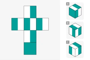In diesem Arbeitsblatt wird die räumliche Visualisierung trainiert, da die Nutzer einen Würfel gedanklich zusammenbauen müssen, um genau zu sehen, wo jede seiner Flächen liegen würde.