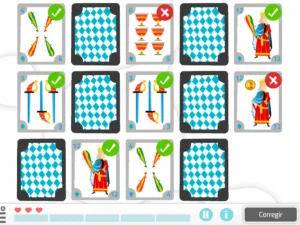 Das Spiel Kartenpaare bilden besteht darin, Karten mit identischen Bildern zu paaren. Der Spieler muss in jedem Zug zwei Karten umdrehen, um zu sehen, ob sie gleich sind. Wenn sie übereinstimmen, bleiben sie sichtbar; wenn nicht, werden sie wieder umgedreht und der Spieler fährt fort, die Karten zu paaren, bis alle Paare gefunden sind.