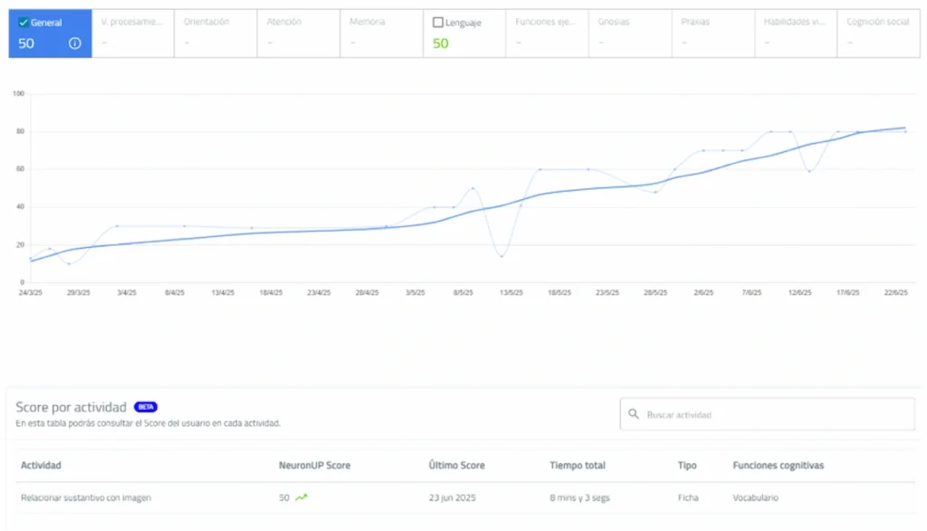 En nuestro servicio de logopedia utilizamos NeuronUP como una herramienta complementaria para potenciar la intervención terapéutica, especialmente en casos de afasia y disartria.