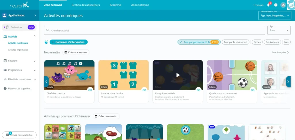 Nous lançons la nouvelle interface de la liste des activités sur NeuronUP, conçue pour rendre la préparation des séances plus fluide, la sélection plus précise et l’utilisation plus régulière, sans perdre le contrôle clinique.