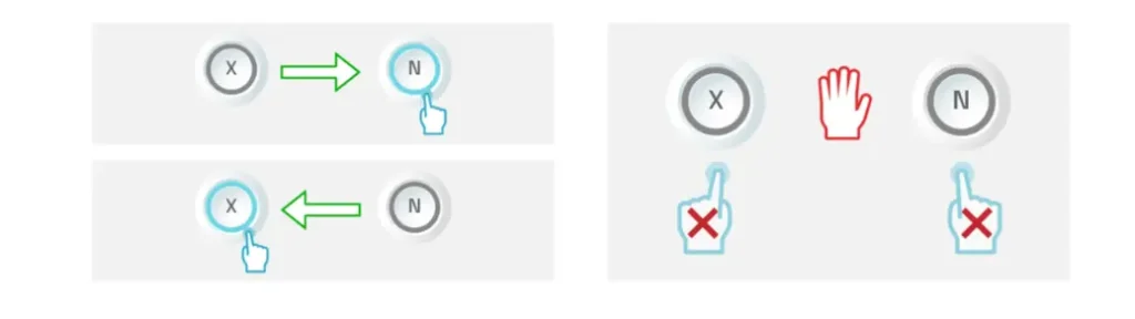 Dans ce test, la personne doit répondre à la direction de la flèche affichée à l’écran en appuyant sur « X » si elle pointe vers la gauche ou sur « N » si elle pointe vers la droite. Toutefois, si un signal d’arrêt apparaît, elle ne doit appuyer sur aucune touche.