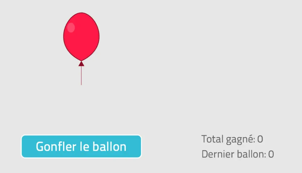 La personne voit un ballon à l’écran. Elle peut le gonfler afin de gagner des jetons, mais s’il explose, elle perd les jetons accumulés pour ce ballon. À tout moment, elle peut choisir d’arrêter et d’encaisser ses gains. Cette tâche place la personne dans un contexte de prise de risque et de récompense.