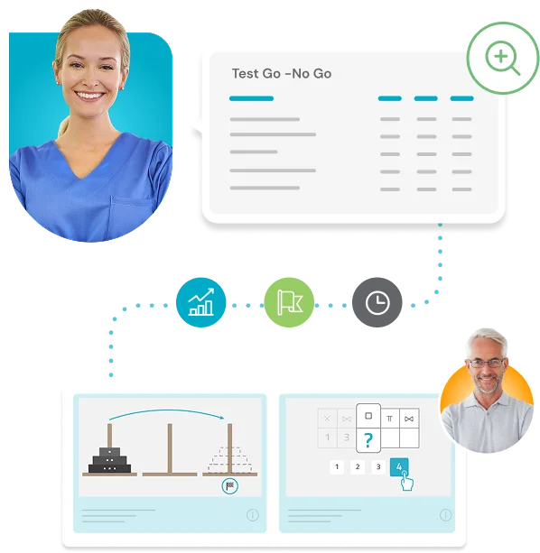 Digitalizza completamente il processo di valutazione cognitiva mantenendo il tuo approccio di sempre, ma con l’agilità offerta da uno strumento digitale. Ottieni risultati automaticamente, analizza le metriche con precisione e osserva in dettaglio le performance e il comportamento dei pazienti per prendere decisioni cliniche più informate e oggettive.