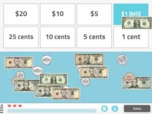 Цель этого упражнения — обучить взрослых обращению с деньгами, поскольку пользователи должны хорошо идентифицировать все монеты и банкноты чтобы не путать их.
